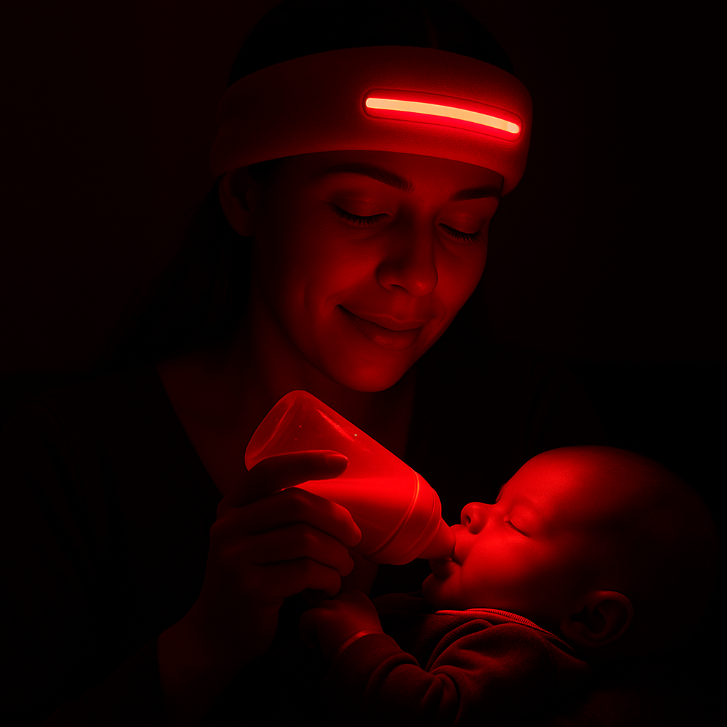 Featuring gentle white and soothing red-light modes, Lumini One helps preserve night vision and minimize sleep disruption for you and your baby. Its soft, comfortable design ensures you'll hardly notice you're wearing it, even during those sleepy 3 AM moments.